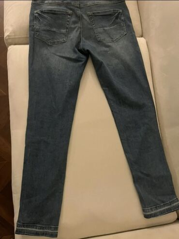Məhsul: Kişi cins şalvarı - Rəng: Tünd mavi, yüngül “fade” effektli - Kəsim: Dar/strait kəsim (slimə yaxın) - Beldən bağlanma: Metal düymə + fermuar - Ölçü: 30 (şəkildə göstərilib) - Ciblər: Ön 2 ...