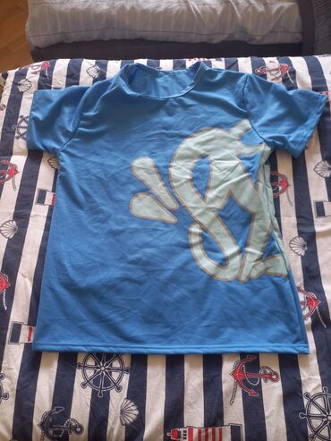 - Naxış: Ön və arxa hissədə böyük, açıq mavi-qırıq ağ rəngli qrafik yazı/loqo tipli print