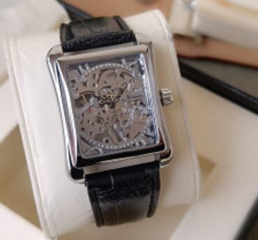 Kişi mexaniki qol saatı – kvadrat (yüngül əyri) korpuslu skeleton dizayn