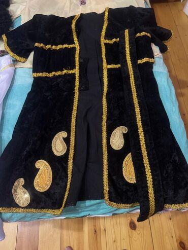 Milli kişi rəqs/geyim dəsti - Qara məxməri çuxa – qızılı lent və