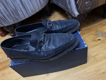 Kişi klassik ayaqqabısı - Rəng: qara, laklı parlaq səth - Dizayn: burun və üst hissədə timsah naxışlı faktura, üst hissədə metal dekor - Model: loafer tipli, bağsız - Material: üst hissə parlaq də...