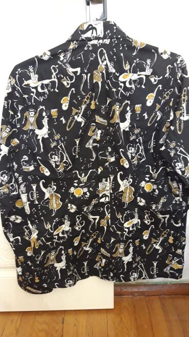 Kişi köynəyi – qara rəngdə, klassik uzunqollu model. Ön hissədə düyməlidir, yaka klassikdir. Sinə tərəfində kiçik metal loqo bəzəyi var. Etiketdə ölçü XL göstərilib. Parçası hamar və yüngül toxumal...