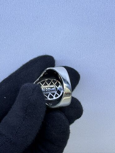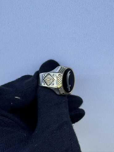 Gümüş kişi üzüyü - Material: gümüş rəngli metal ərintisi (üzərində dekorativ naxışlar). - Dizayn: klassik möhür üzüyü forması; yan hissələrində relyef ornamentlər və simvolik təsvirlər. - Mərkəz d...