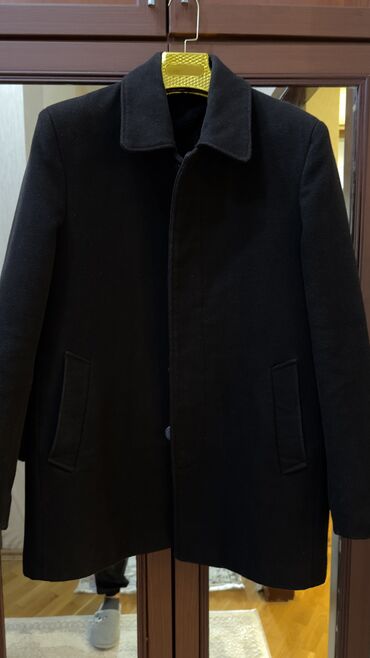 Kişi palto – M razmer - Rəng: qara - Kəsim: minimalistik, iki düyməli ön bağlama - Yaxa: geniş, klassik dizayn - Ciblər: yanlarda iki dərin cib - Uzunluq: bud səviyyəsindən bir qədər aşağı...