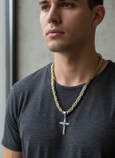 QızılıMəhsul: Paslanmayan poladdan kişi boyunbağı və xaç asqı