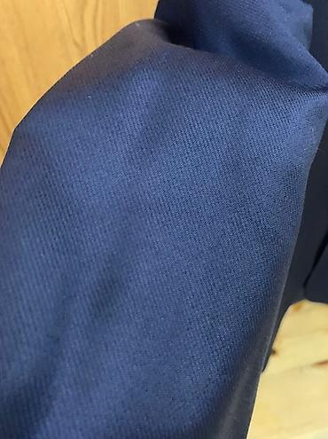 Kişi üçün tünd göy rəngli klassik pencək. - Ölçü: 40 (şəkildə göstərilib) - Model: İki düyməli, dar kəsimə yaxın - Yaxa: Klassik haşiyəli (notch lapel) - Ciblər: 2 yan qapaqlı cib, 1 sinə cibi - D...