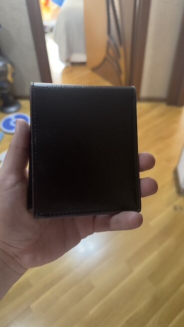 Qara rəngli dəri kart-holder/cüzdan - Material: cilalanmış təbii dəri, səliqəli əl tikişi - Dizayn: ikiqat qatlanan, minimalist form - Bölmələr: içəridə hər iki tərəfdə kart üçün yuvalar, mərkəzdə...