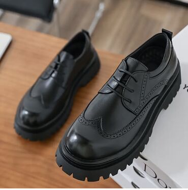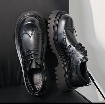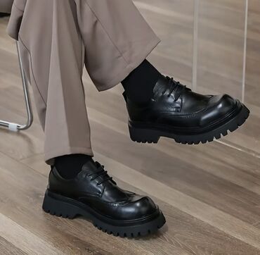 Qara rəngli qalın altlıqlı bağlamalı ayaqqabı ( temudan alınıb ölçü böyük olduğu üçün satıram yenidi) - Model: klassik derby üslubunda, yuvarlaq/qutuvari burun - Rəng: tam qara - Üst hissə: hamar ...