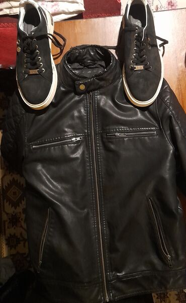 BRAND MAVI Qara Suni dəri görünümlü kişilər üçün motosiklet üslublu Large godekce ,və qara debli ayyakkabi 42 ölcu. Qiymete iki mehsul aitdir