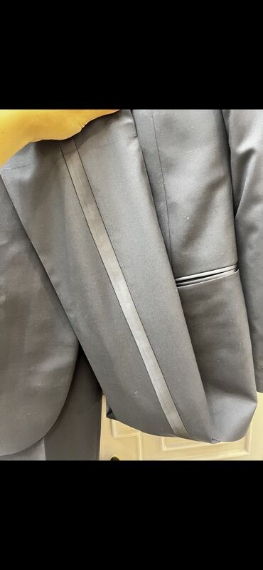 Geyim sifarişlə yeni alınıb gətirilib və sadəcə 44-0 ölçüsü uyğun gəlmədiyindən satılır. İki parçalı kişi kostyumu – qrafit boz rəngdə - Üst: ikicərgəli düymələmə, geniş haşiyəli (peak lapel) yaxa,...