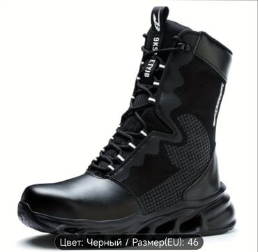 Qara rəngli taktiki/iş çəkmələri - Material: hamar dəri üst hissə, iç hissədə yumşaq yastıqlama - Bağlanma: yan tərəfdə möhkəm fermuar və əlavə velkro kilid, üst hissədə deşikli bağlama üçün nəzər...