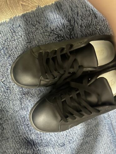 Krasovka tünd rəngdə və ağ altlıqla təqdim olunur. 39 razmer.Hər iki ayaqqabının yan tərəfində qara dəri üzərində boz rəngli zolaqlar var. Krossovkaların yan hissəsində rəngli loqo, daban hissəsind...