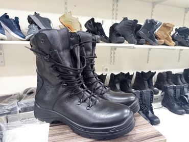 Məhsul: Qara dəri hərbi/taktiki üslubda şnurovkaedilən botlar Xüsusiyyətlər: - Material: teksturalı qara təbii dəri üstlük - Bağlanma: uzun şnurla tam şnurovka, sürətli bağlama üçün metal ilgəklər...