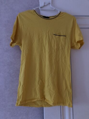 - Sarı T‑şört: yuvarlaq yaxalı, yaxada nazik tünd haşiyə, sinədə dekorativ cib detallı.