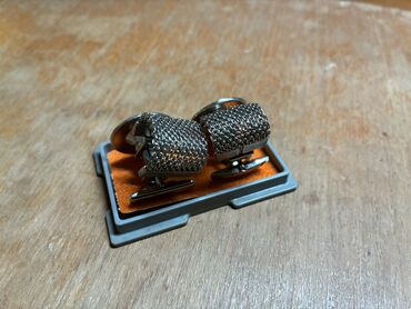 - Dəstdə 2 ədəd qol düyməsi var; kiçik sərt altlıqlı stend üzərində təqdim olunur (narıncı içlikli, boz çərçivə).
