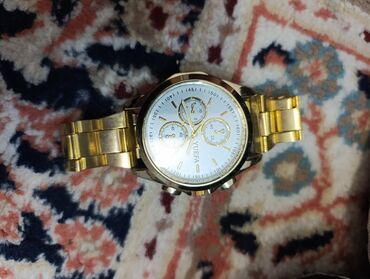 1) Qızılı rəngli metal qayışlı saat (marka: YUEFA)