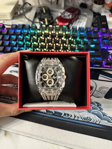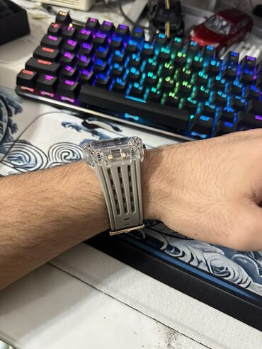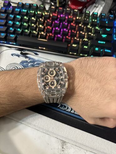 - Kənar düymələr: sağ tərəfdə tac və iki düymə (xronoqraf görünüşlü).