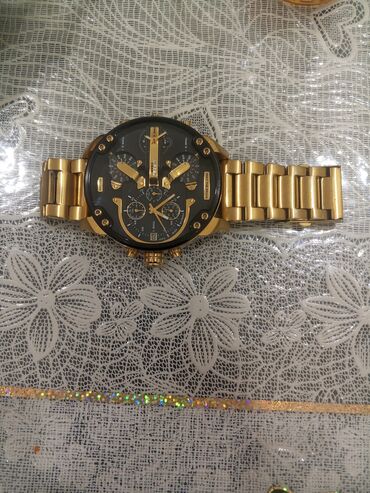 - Dizayn: sənaye üslubunda, böyük diametrli siferblat, qızılı və qara rəng kombinasiyası ilə cəlbedici görünüş.