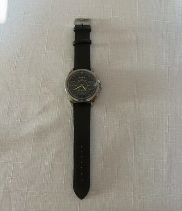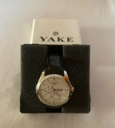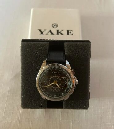 - YAKE saatı: qara siferblat, xronoqraf üslublu alt göstəricilər, takimetr halqası, gümüşü korpus, qara dəri kəmər. Qutusu mövcuddur (YAKE yazılı).