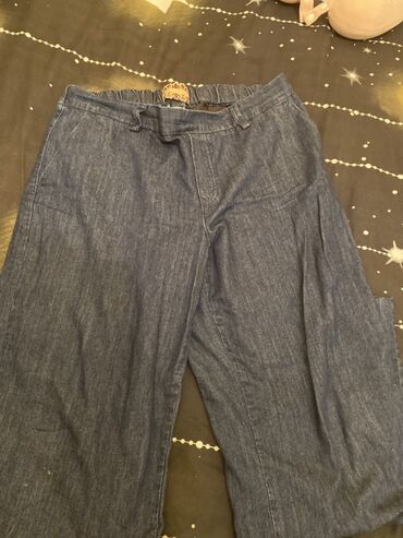2) Tünd mavi (indigo) yüngül denim şalvar – elastik arxa bel, yan ciblər, rahat kəsim.