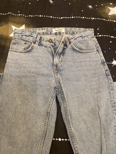 3) Açıq mavi Pull&Bear cins – “Straight/Vintage” kəsim, beş cibli, düymə və fermuarlı, kəmər ilgəkləri ilə.