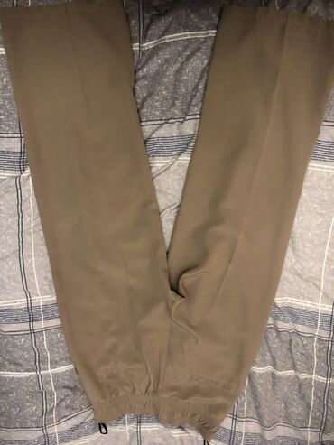 hamısı 40m tək 10m razmer şəkil üstə yazilib Kişi şalvarları – müxtəlif rəng və ölçülər - Model 1: Bej rəngli, düz kəsim. Ön hissədə iki düyməli qapanma, yan ciblər, beldə kəmərkeçirənlər. Üzərind...