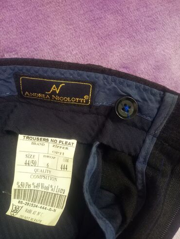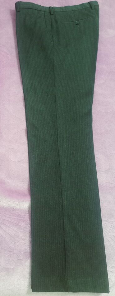 Kişi klassik şalvarı - Rəng: zeytun-yaşıl (boz-yaşıl ton) - Ölçü: 42 (şəkildə göstərilib) - Kəsim: klassik, ütü xətti olan düz balaq - Material: nazik, kostyum tipli parça (yay-qış arası istifadə ...