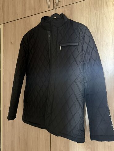 Kişi üçün quilted (romb tikişli) gödəkçə - Rəng: tünd yaşıl/qara tonlarında - Material: yüngül, isti saxlayan dolğu; suya davamlı parça təsiri verən hamar üst qat - Daxili: hamar astar - Yaxa: qar...