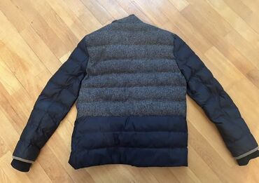 Məhsul: Kişi qış gödəkçəsi - Stil: Hibrid dizayn – üst və arxa hissədə məxməri/çətənə tipli boz parça, qol və alt hissələrdə tünd göy şişmə (puffy) panellər - Rənglər: Boz və tünd göy kombin - Bağ...