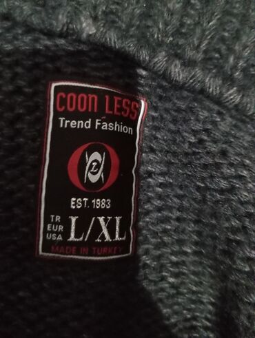 Brend: Coon Less (Trend Fashion) Ölkə: Türkiyədə istehsal Ölçü: L/XL (TR/EUR/USA) Məhsul təsviri: - Tünd boz/qaranlıq rəngdə toxunma kişi sviteri/kardiqanı - Yarımboğaz (hündür) bel və ribli ətək-...Giriş•Qeydiyyat