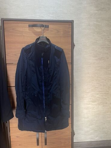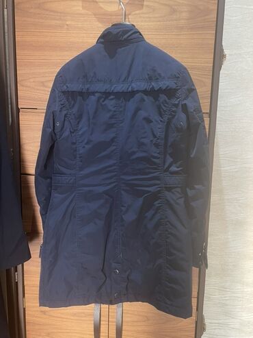 Klassik tərzli kişi palto - Rəng: tünd göy (navy) - Model: qısa palto/trençkota bənzər kəsim, düz siluet - Yaxa: klassik düz yaxa - Bağlama: ön hissədə düyməli, üstü örtülü planka - Daxili astar: ...