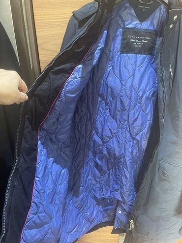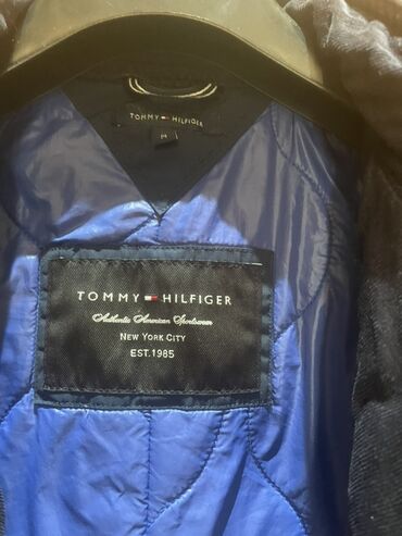 Tommy Hilfiger kişi palto - Rəng: tünd göy (navy) - Ölçü: S (etiketdə göstərilib) - Kəsim: klassik bir sıra düyməli, qatlana bilən yaxalı - Model: içi çıxarıla bilən quilted (romblarla kapitone) i...