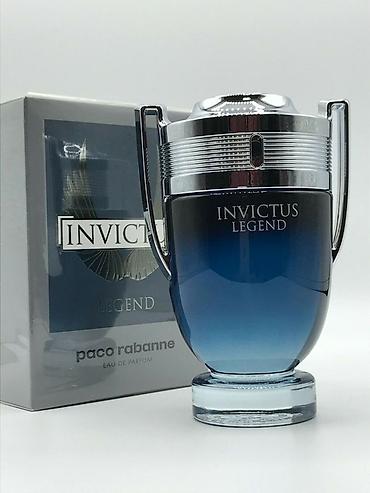 - Paco Rabanne Invictus Legend Eau de Parfum – dəniz notları və greyfrutla başlayan güclü, enerjili tərkib; dəfnə yarpağı, ədviyyə və ambra akordları ilə qürurlu, sportif xarakter; quru yerdə uzunömürlü iz. Qalxan-kupa formasında tünd mavi flakon.