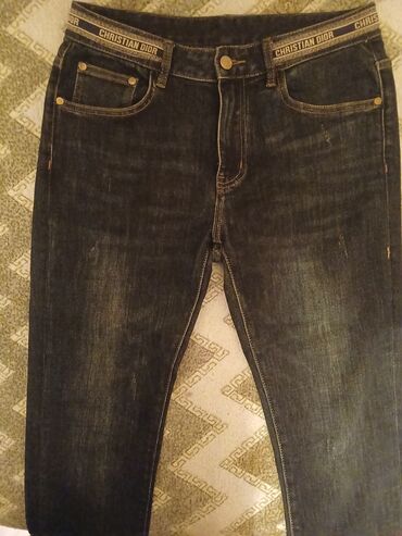 70manata alinib 50e satilir tecili istiyen nomreye yazsinn )Mavi rəngdə kişi cins şalvarı - Kəsim: dar/straight fit siluet, orta bel - Material: klassik denim (cəngəllik effektli yuyulma) - Dizayn...