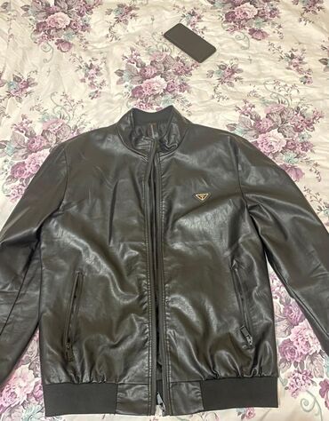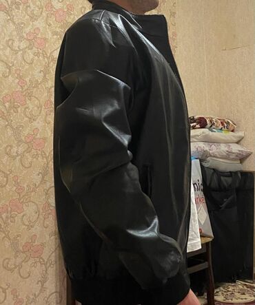 Kişi üçün qara rəngli dəri görünümlü qısa gödəkçə