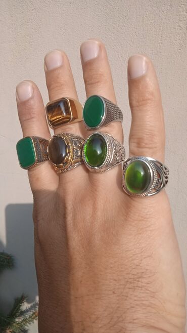 Kişi üzüyü – orijinal dizaynlı, geniş halqalı gümüş 925 prob . Üzərində dərin yaşıl rəngli, iri, çoxbucaqlı kəsimli mərkəzi daş yerləşdirilib; Klassik və İslam motivlərin birləşdiyi, diqqətçəkən və...