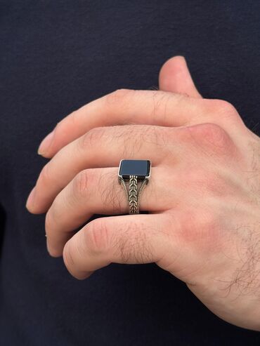 Real aliciyla razilasma var . ümüş kişi üzüyü, üstündə qara, düzbucaqlı daşla dizayn edilmişdir. Üzüyün bandı zəncirvari naxışlıdır və qara daş dörd dırnaqla bərkidilmişdir. Bu üzük gündəlik istifa...