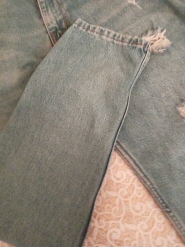 Hit Me Up (HMU) brendindən cins şalvar - Model: zədələnmiş/“ripped” dizaynlı düz kəsim - Rəng: açıq mavi denim, yüngül yuma effektli - Parça: klassik denim (etiketdə HMU – “Hit Me Up”) - Ölçü: 30 ...