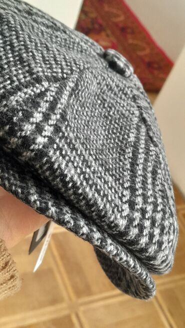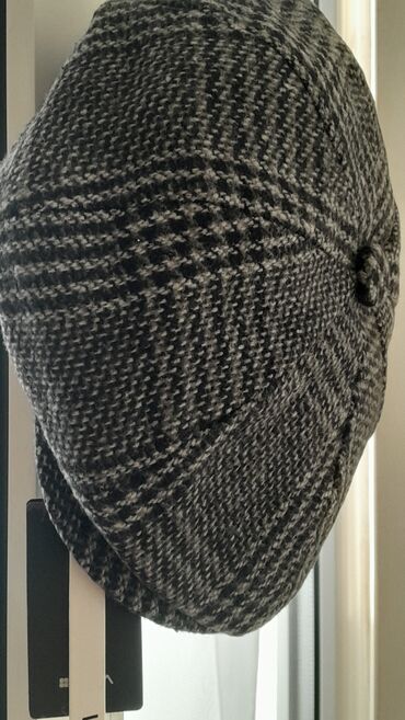 Мужская кепка Məhsul: Nord Mark kişi kasketi (newsboy cap) - Rəng: tünd boz, incə xətlər və tikiş panelləri ilə - Dizayn: 8 panelli klassik newsboy/flat cap forması, yuxarıda düymə detallı - Mate...