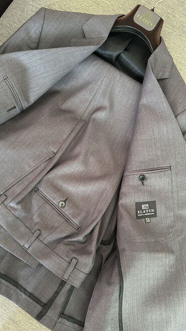 Elatus üçlü kostyum dəsti - Brend: ELATUS (Made in Azerbaijan) - Rəng: tünd bənövşəyi/navy tonlarında - Dəst: pencək + şalvar + jilet - Ölçü etiketində: 50 (jilet etiketində “50” görünür) - Parça:...