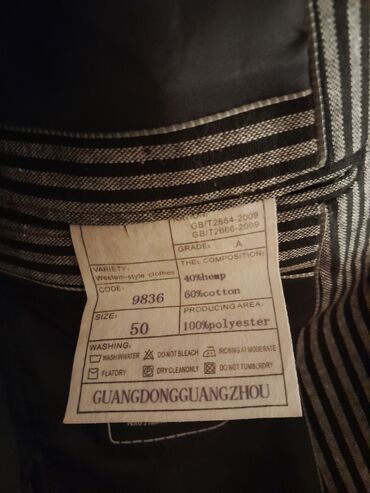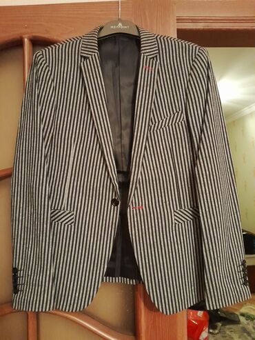 Kişi üçün klassik pencək - Rəng: tünd boz/qara tonlarda - Material: üst parça 100% pambıq (xırda zolaqlı/corduroy quruluş), astar 100% asetat - Ölçü: 50 (etiketdə göstərilib) - Dizayn: iki düyməli...Giriş•Qeydiyyat