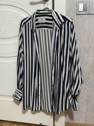 LC Waikiki kişi köynəyi - Model: uzunqol, düyməli klassik köynək - Rəng: açıq bej tonlarında; sinə hissəsində ağ və boz zolaqlı dekor - Parça: nazik, nəfəsalan pambıq qarışığı (etiketdə LC Waikiki...