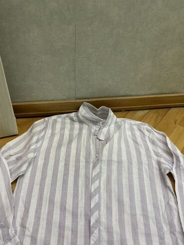 Dubaydan alınıb ölçü uyğun olmadığı üçün istifadə olunmayıb yenidir. Qara rəngli, ağ enli şaquli zolaqlı köynək. Klassik yaxalıq, ön hissədə düyməli bağlanma. Uzunqol dizayn, manjetlərdə düymələr...