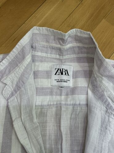 Yay və isti havalar üçün rahat, gündəlik və smart-casual geyimlərlə uyğunlaşan, geniş qəlibli 2XL zolaqlı köynək. Etiketdə “www.zara.com – Made in China” qeyd olunub.