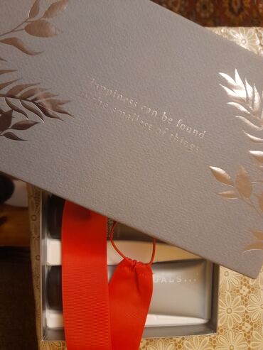 - Lüks, yenidən istifadə oluna bilən hədiyyə qutusu, üzərində “Happiness can be found in the smallest of things” yazısı
