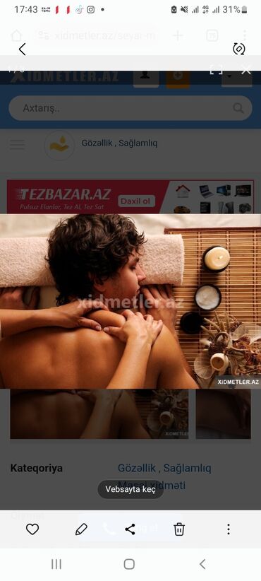Gözəllik, Sağlamlıq – Masaj xidməti kateqoriyası.