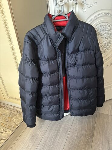Tünd lacivərt rəngdə kişilər üçün şişmə qış gödəkçəsi.