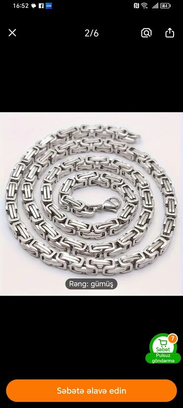 Kişi zəncir dəsti - Material: metal ərintisi, gümüşü rəng - Komplekt