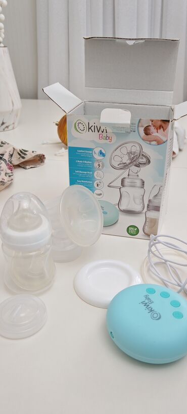 Qutuda: nasos qurğusu (mavi idarəetmə bloku), şüşə/sağıntı qabı, silikon masaj başlıqları, boru, USB kabeli və aksesuarlar. Yeni deyil ama seligeli ve temiz iwlenib. 60 manata alinmiwdi.