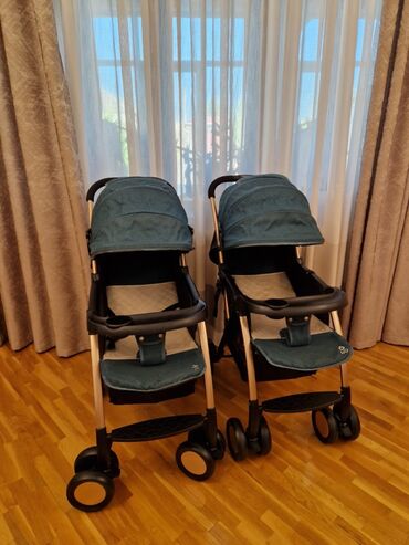 Əkizlər üçün həm yataq həm oturaq vəziyyətli uşaq arabası.👍 Çox az və səliqəli işlədilib, demək olarki ancağ evdə sürülüb, hətta tutacağların üstündə salafanı qalıb👍 Arabanı 2 istiqamətdə üzü anay...